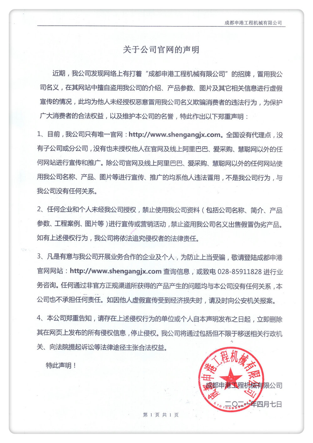 關(guān)于公司官網(wǎng)的聲明