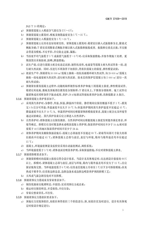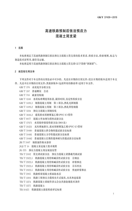 GB/T37439-2019高速鐵路預制后張法預應力混凝土簡支梁新執行標準