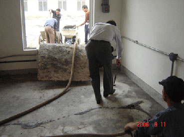 以確保建筑物的安全,注漿孔水平間距為1m,分別布置垂直注漿孔,室內(nèi)地坪以鉆洞法解決,不撬開地板。施工中采用了我公司生產(chǎn)的GS20E灌漿泵,實現(xiàn)相鄰注漿孔注漿及多序注漿相結(jié)合的方案,對地基進行加層補強,達到設(shè)計承載力的要求。目前加層補強施工已完工,經(jīng)檢測未發(fā)現(xiàn)異常,效果很好。