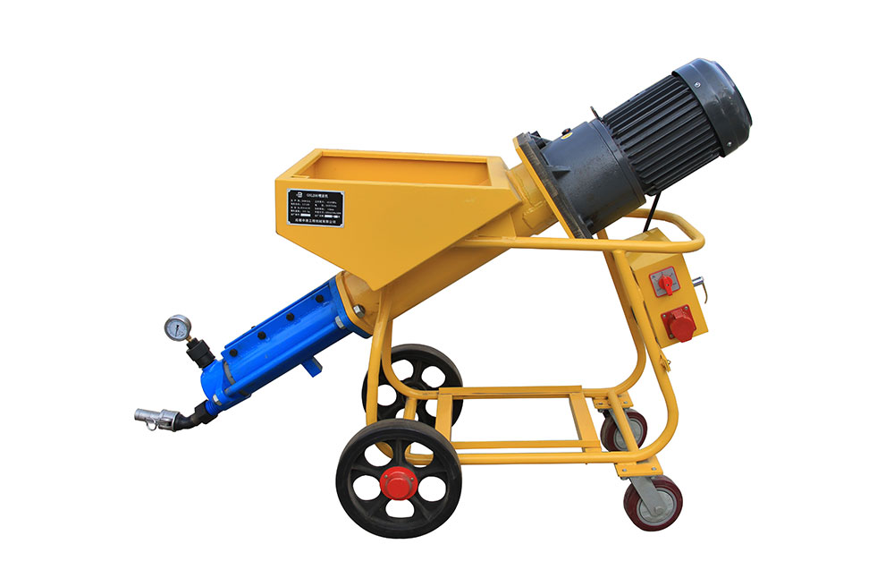 本機(jī)結(jié)構(gòu)新穎、構(gòu)思獨(dú)特;避免了灌注稠漿較困難的不足,使用安全、方便、效率高。本機(jī)由電動機(jī)、減速器、料斗、增壓定子總成、注漿管和電氣系統(tǒng)等組成。當(dāng)用于濕噴時(shí),還包括噴射器和空壓機(jī)(用戶可選配),其特點(diǎn)如下: